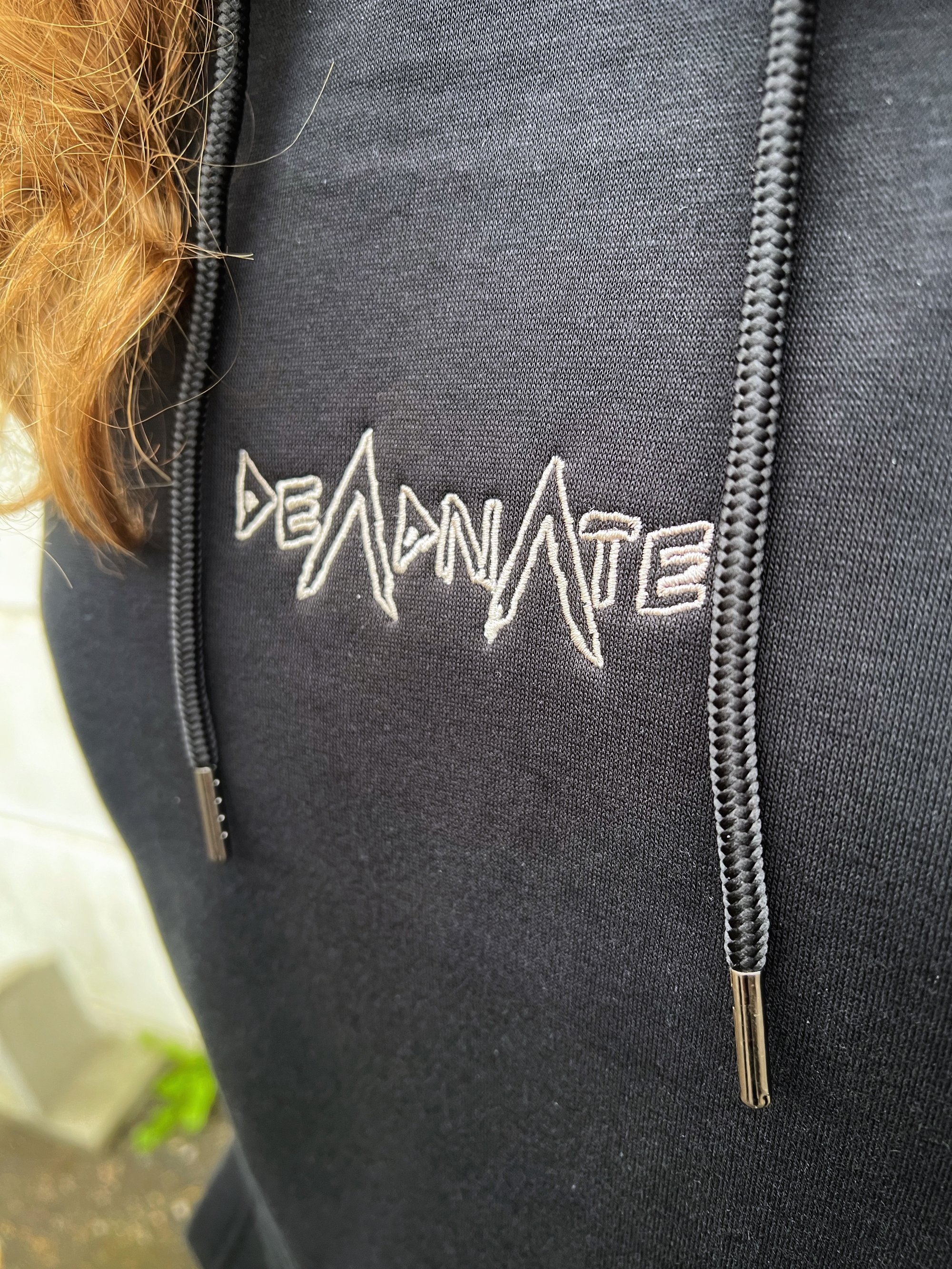 Black oversized hoodie with an embroidered Deadnate logo in grey. Soft and high quality material.